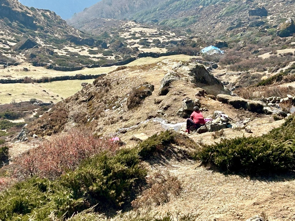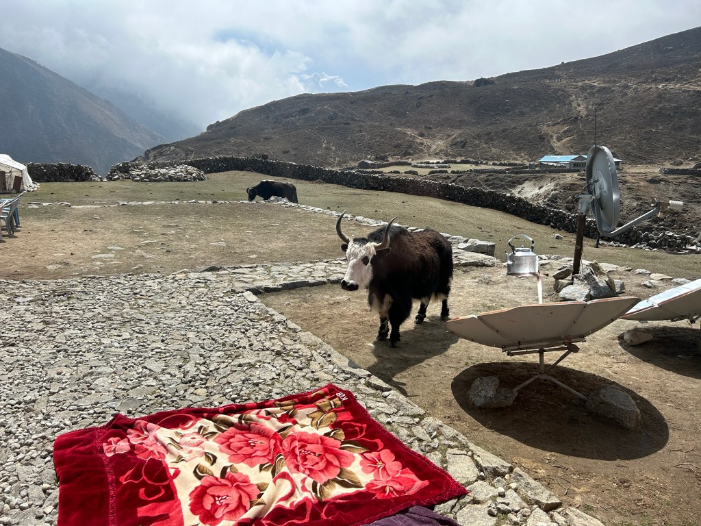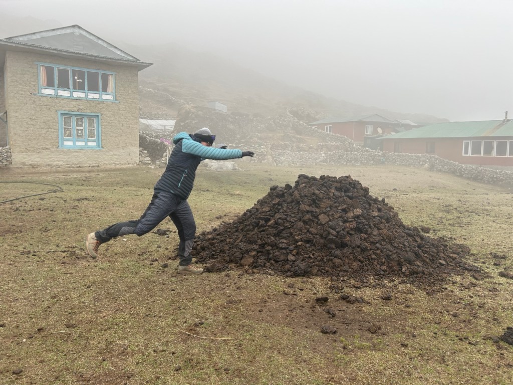 Po dvou a půl hodinách chůze jsme dorazili do cíle a rozhodli jsme se prozkoumat okolí. Zjistili jsme, že tady topí trusem yaků, který mají všude hezky nasušený na hromadách.