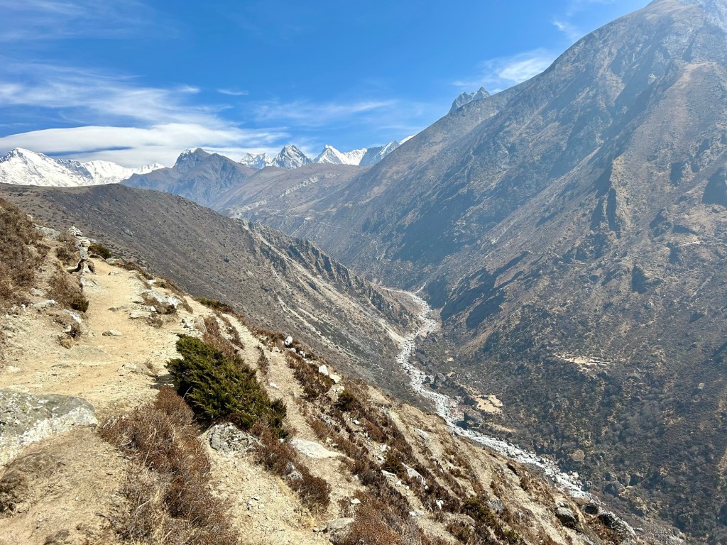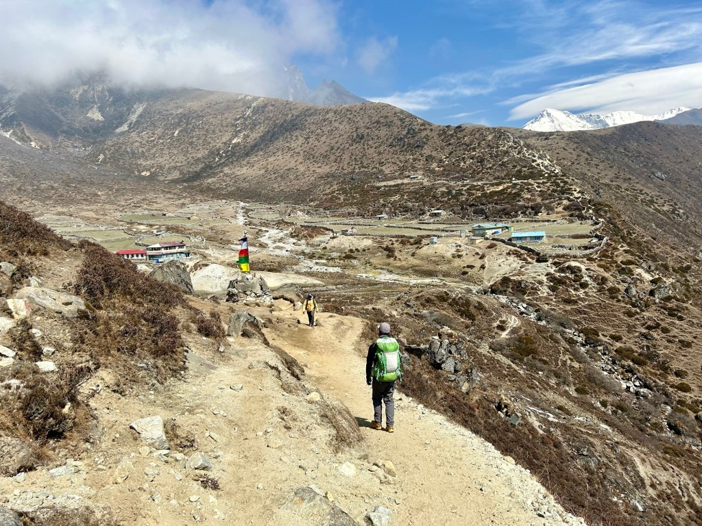 Dnešní den nám dopřál jen krátkou trasu. Jen 5,5 km a 400 metrů výškový převýšení, ale s krásným slunečným počasím. Na chvíli nás pohltila HBčkovská nálada a lákalo nás jít dál, až na další zastávku a Machermo klidně vynechat. Jenže naše plány byly omezeny překaženy rezervovanými lodgemi.