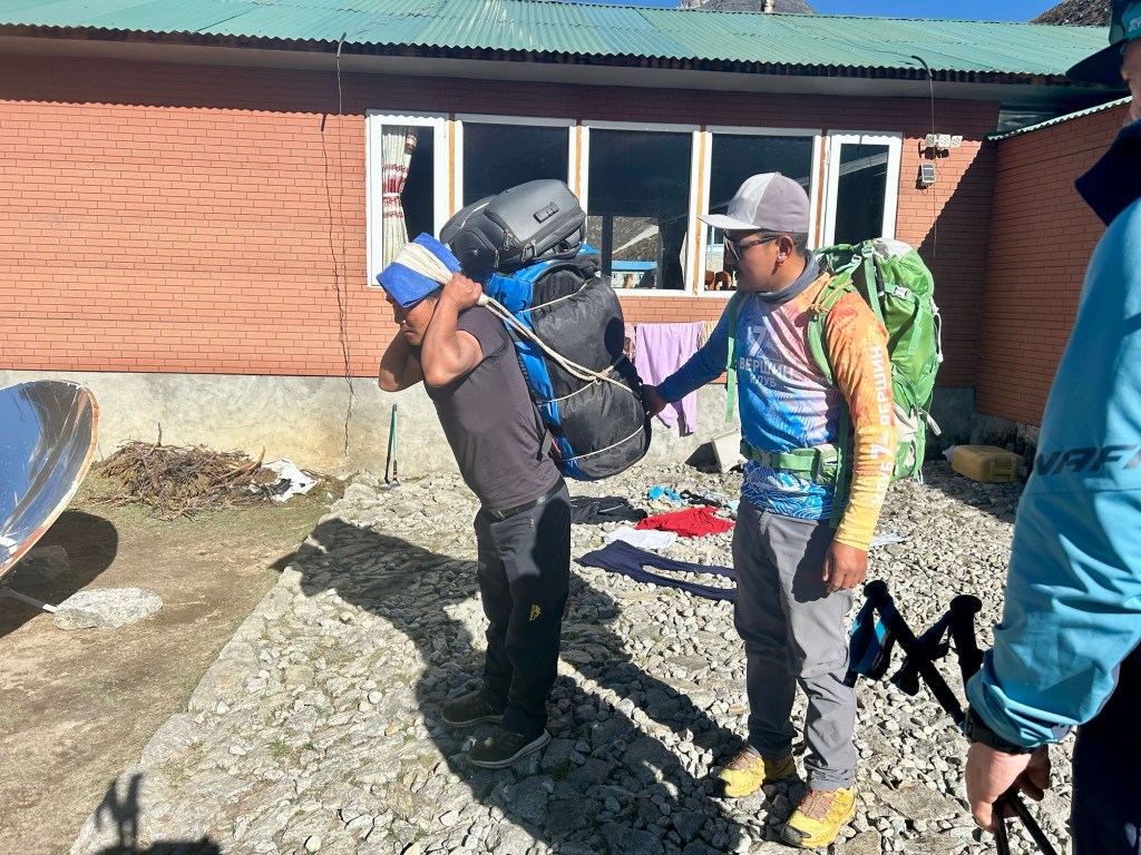 Mingma si sbalil naše tašky a taky vyráží na cestu.