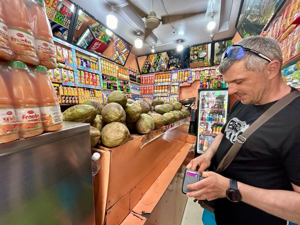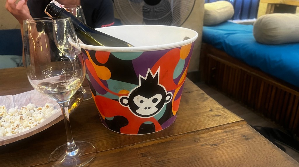 Nakonec jsme včera místo Czech pubu zvolili střešní restauraci, která nabízela široký výběr vín. Zdejší obsluha s víny trochu bojuje stejně jako s pivem. Když jsme se zeptali na španělské víno z menu (protože tam bylo jen španělské víno), dostali jsme odpověď „bílé a červené“. Následně nám všechna vína vytáhli z lednice na bar a my, vybaveni vinařskou aplikací, jsme si vybrali to pravé. A když Honza poprosil o ice kýbl, byl to pro celou desetičlennou obsluhu podniku hotový maraton, ale nakonec se nějaký kbelík našel 🙂